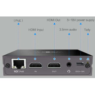 Dotato di potenti funzioni come PoE, display LCD con tally di grandi dimensioni, controllo PTZ, linea audio da 3,5 mm in/out, audio multicanale, funzioni intercom, gestione centralizzata, N6 è il modo più semplice per accedere al favoloso mondo NDI per una bassa latenza e un'alta qualità dell'immagine con scelte versatili. L'N5 supporta l'ingresso 3G-SDI, mentre l'N6 supporta l'ingresso HDMI.