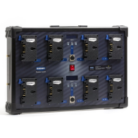Power-Station BLUESHAPE è un comodo sistema per integrare la potenza di più batterie V-lock in un'unica fonte che può essere sfruttata ovunque in qualsiasi momento in una contemporanea uscita a doppia tensione.