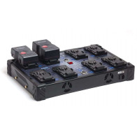ll caricabatteria a parete 8 ch BLUESHAPE Utility per il monitoraggio per batterie al litio con attacco V-Mount, carica fino a otto batterie contemporaneamente e offre due porte XLR per i dispositivi di alimentazione, il tutto consentendo la flessibilità di essere montati saldamente su una parete e facilmente smontabili per più accessibilità.