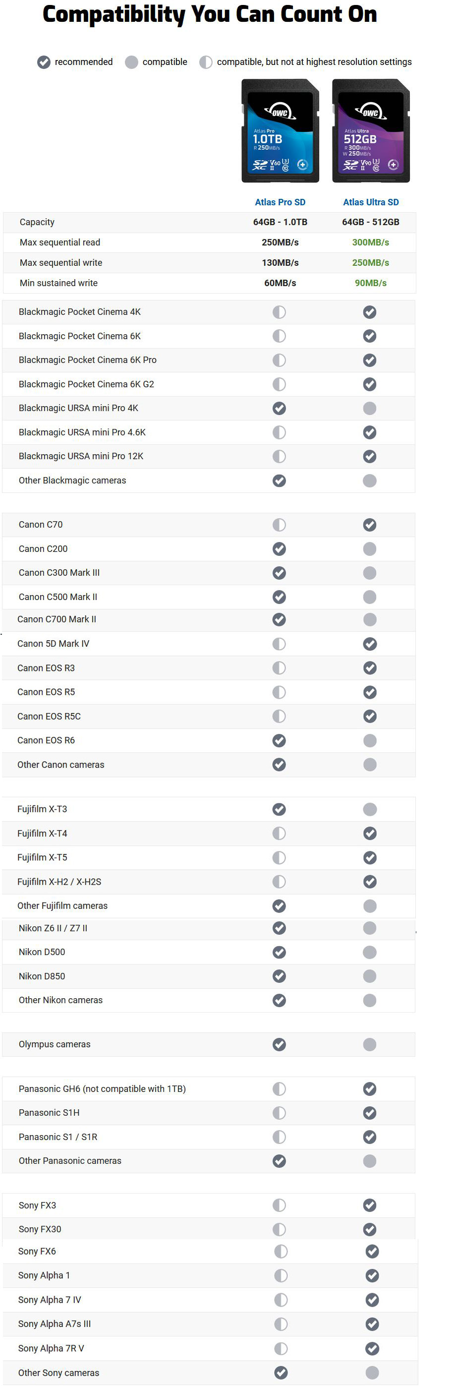 OWC 128GB Atlas Ultra SDXC UHS-II V90 Media Card - R 300MB/s - W 250MB/s